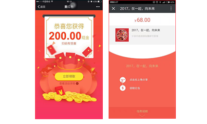 線下發放紅包開辟新的獲客、流量來源,線上分享領紅包加閱讀獎勵,將流量無限放大,融通線上與線下,營銷一體化的消費體驗